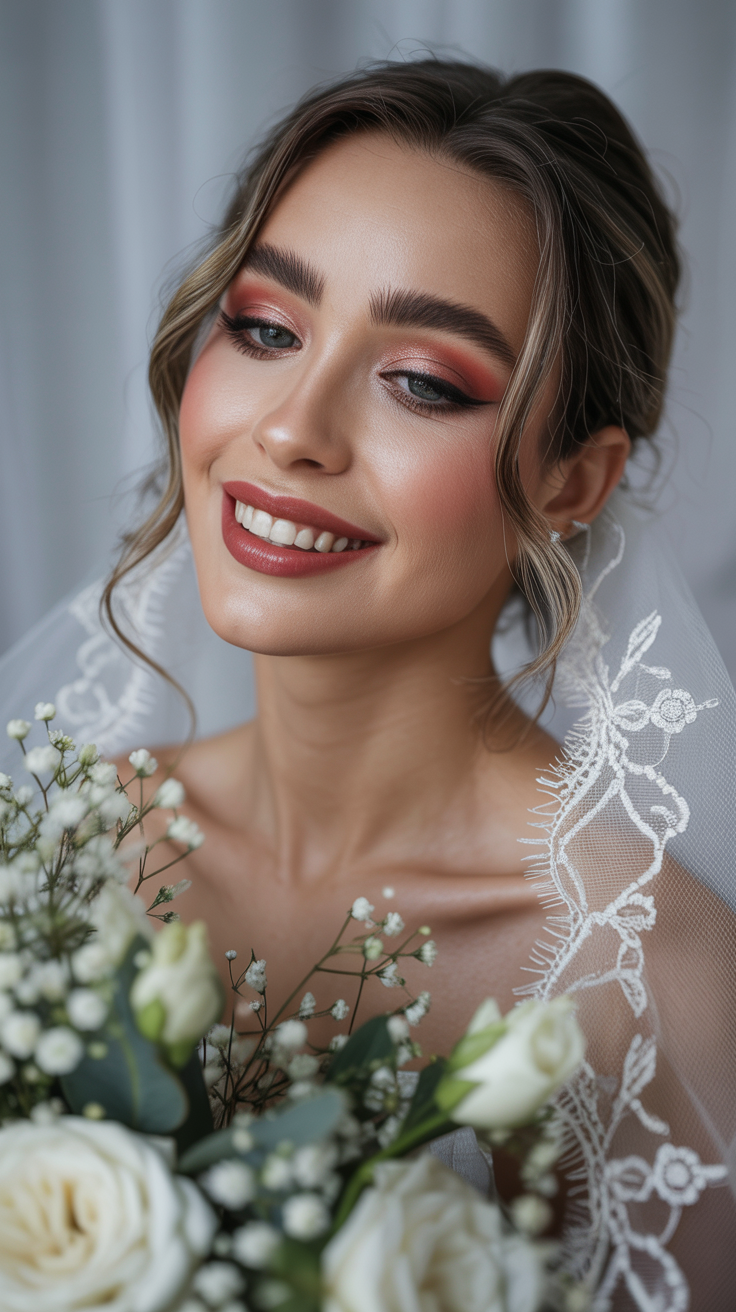A cherry coded makeup look is elegant and understated for weddings or formal events. Use a soft, cherry-toned blush on the cheeks with a bold lip color. This look makes a statement without overwhelming the overall look.