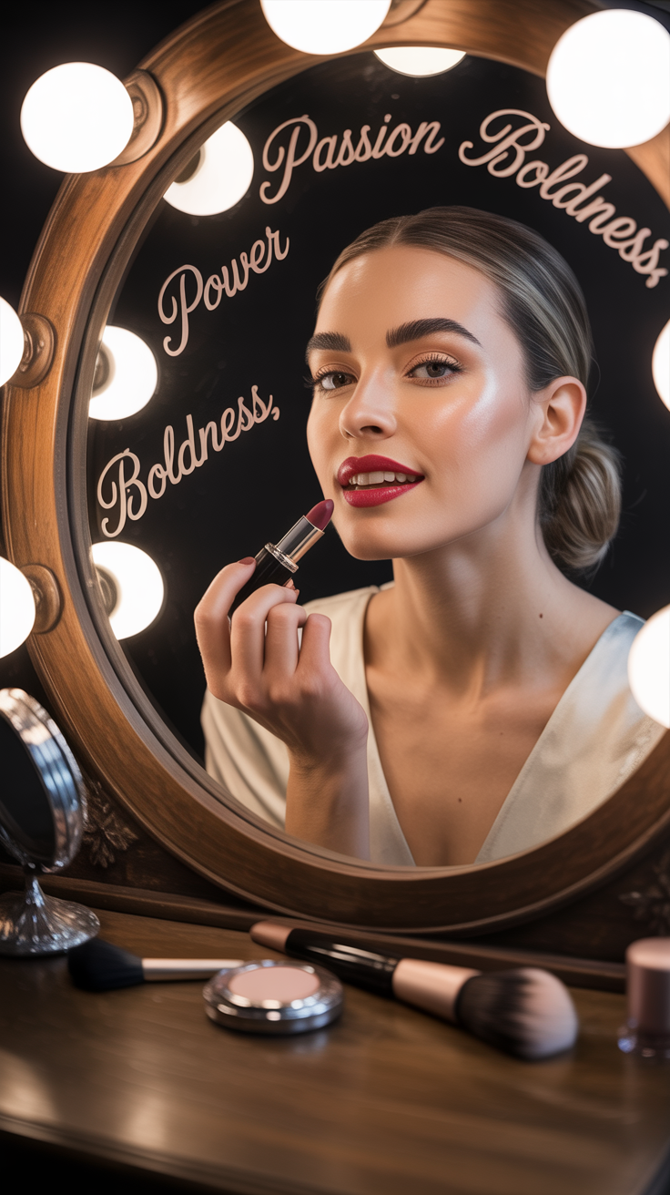 Red tones in makeup, like cherry coded looks, have a big impact on our minds. Red is linked with confidence, passion, and energy. It can make the wearer feel more powerful and attractive.