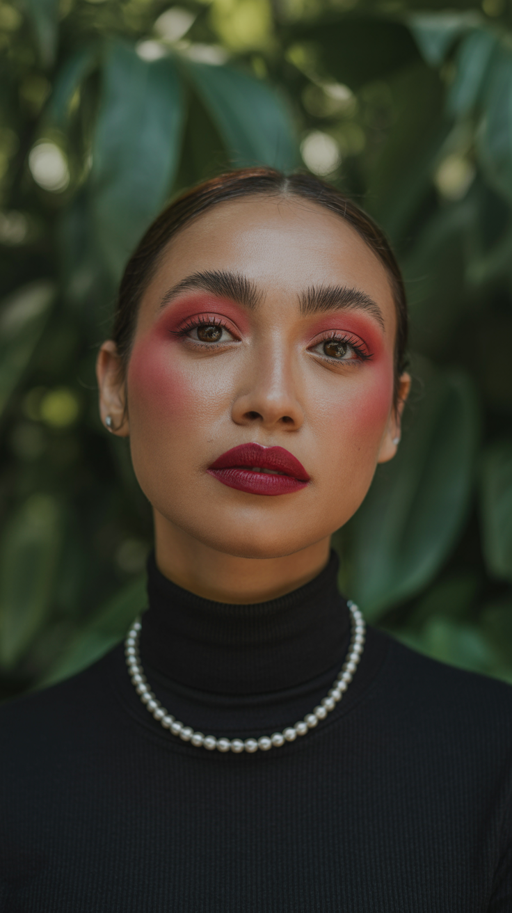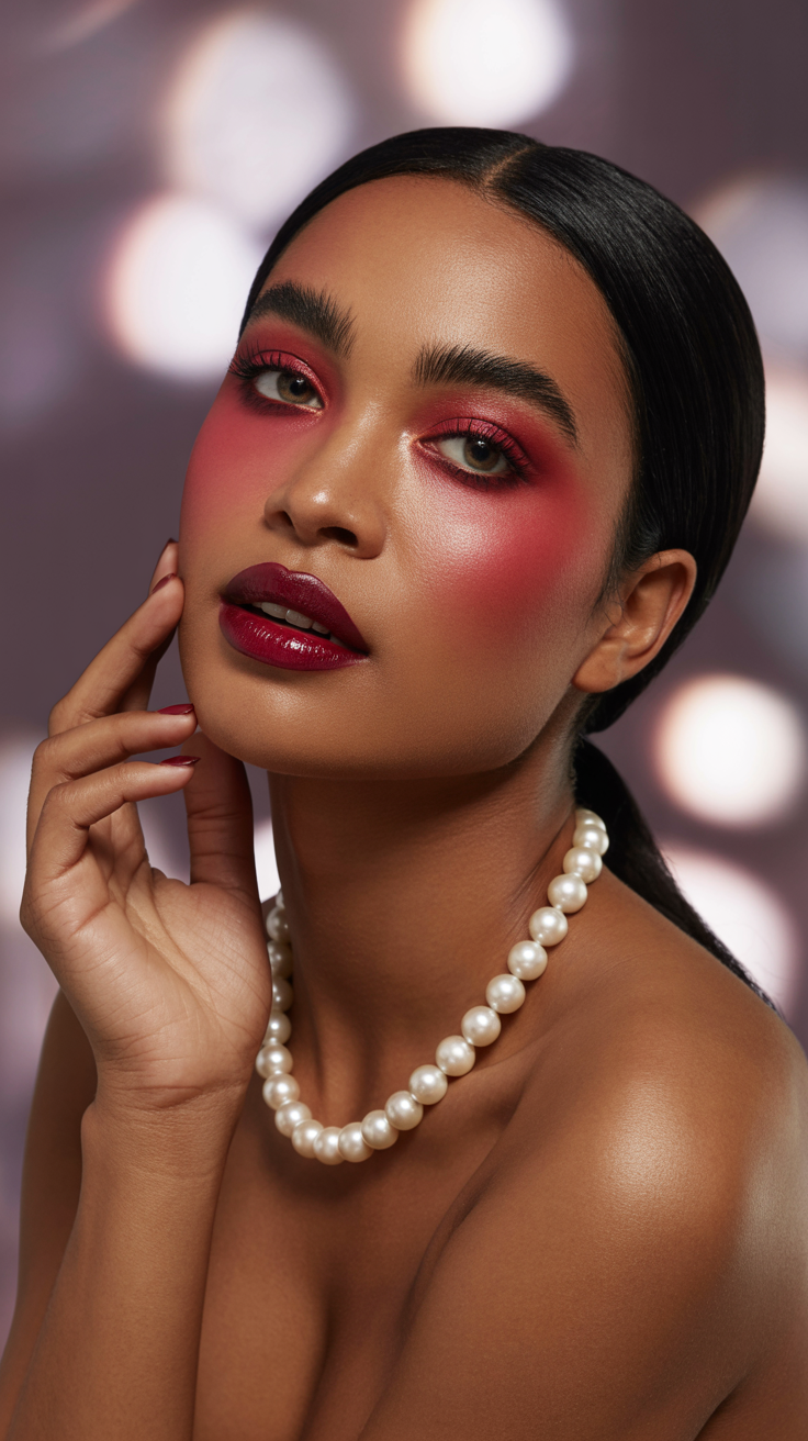 - Deep cherry blushes for a healthy, sun-kissed glow.