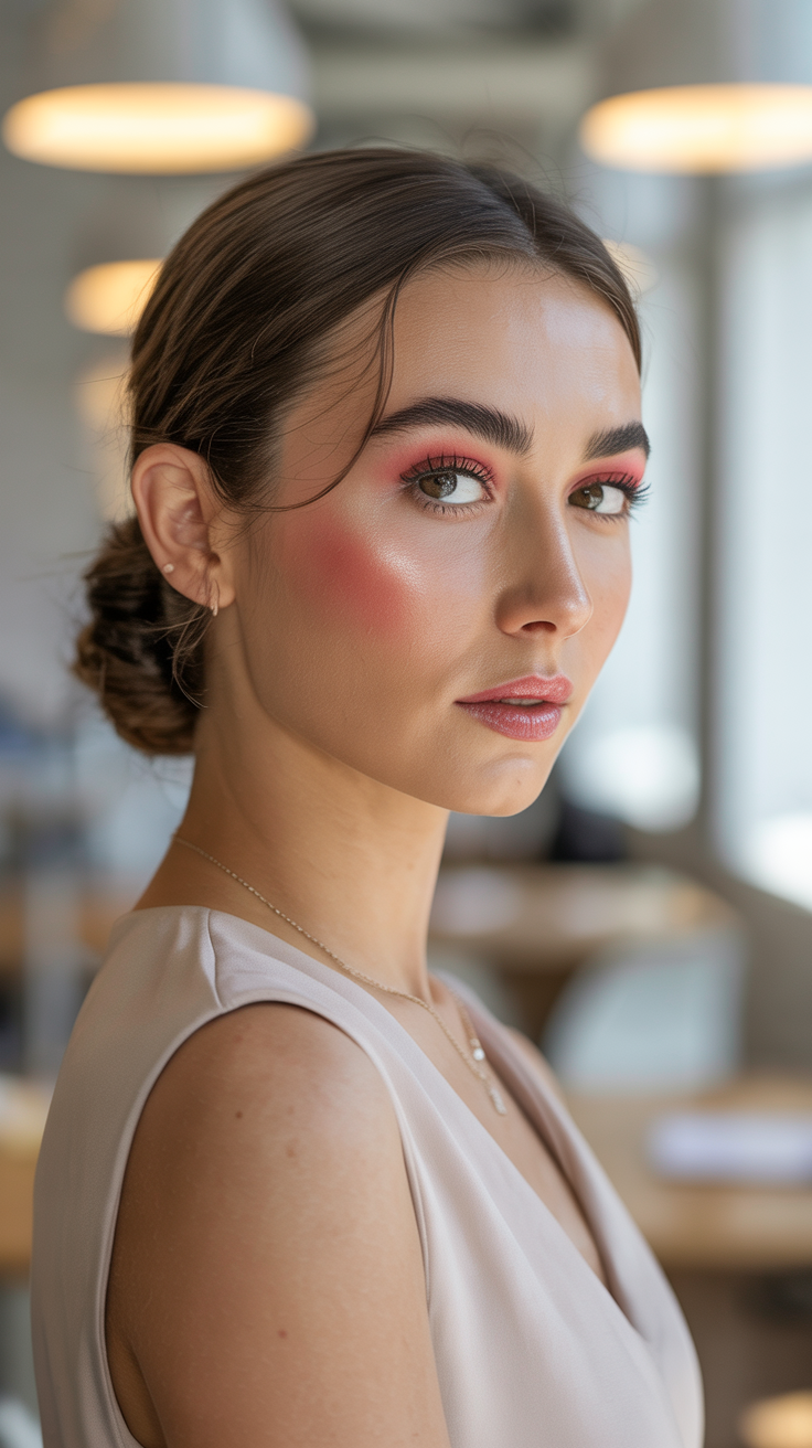 A subtle cherry flush adds warmth to your face, ideal for work and casual days. Apply a light cherry-toned blush to your cheeks. Use a cherry lip balm for a hint of color. This look is feminine and long-lasting when done right.