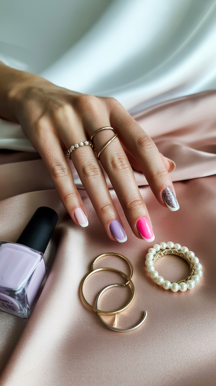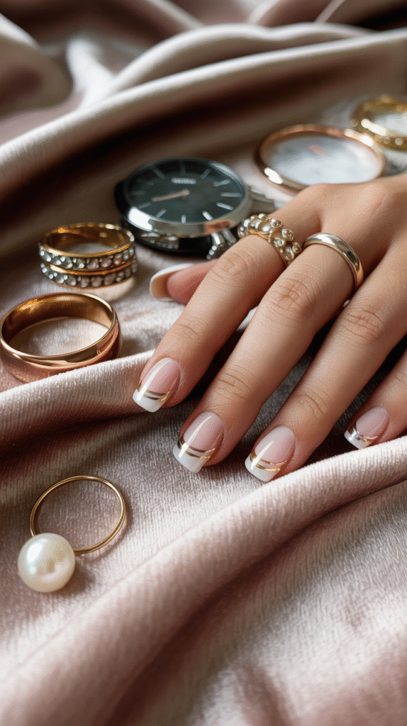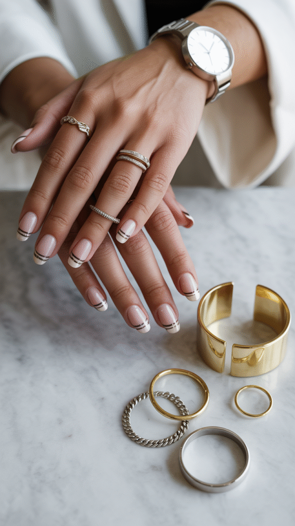 Layered lines in silver, gold, or metallic hues add sleek dimension. Think jewelry for your nails—modern and stylish.