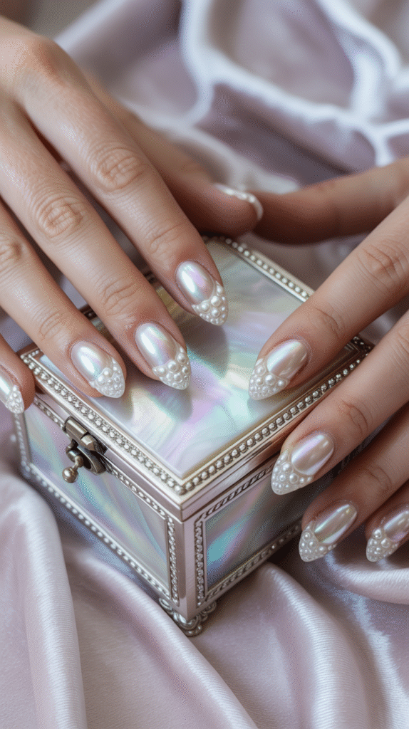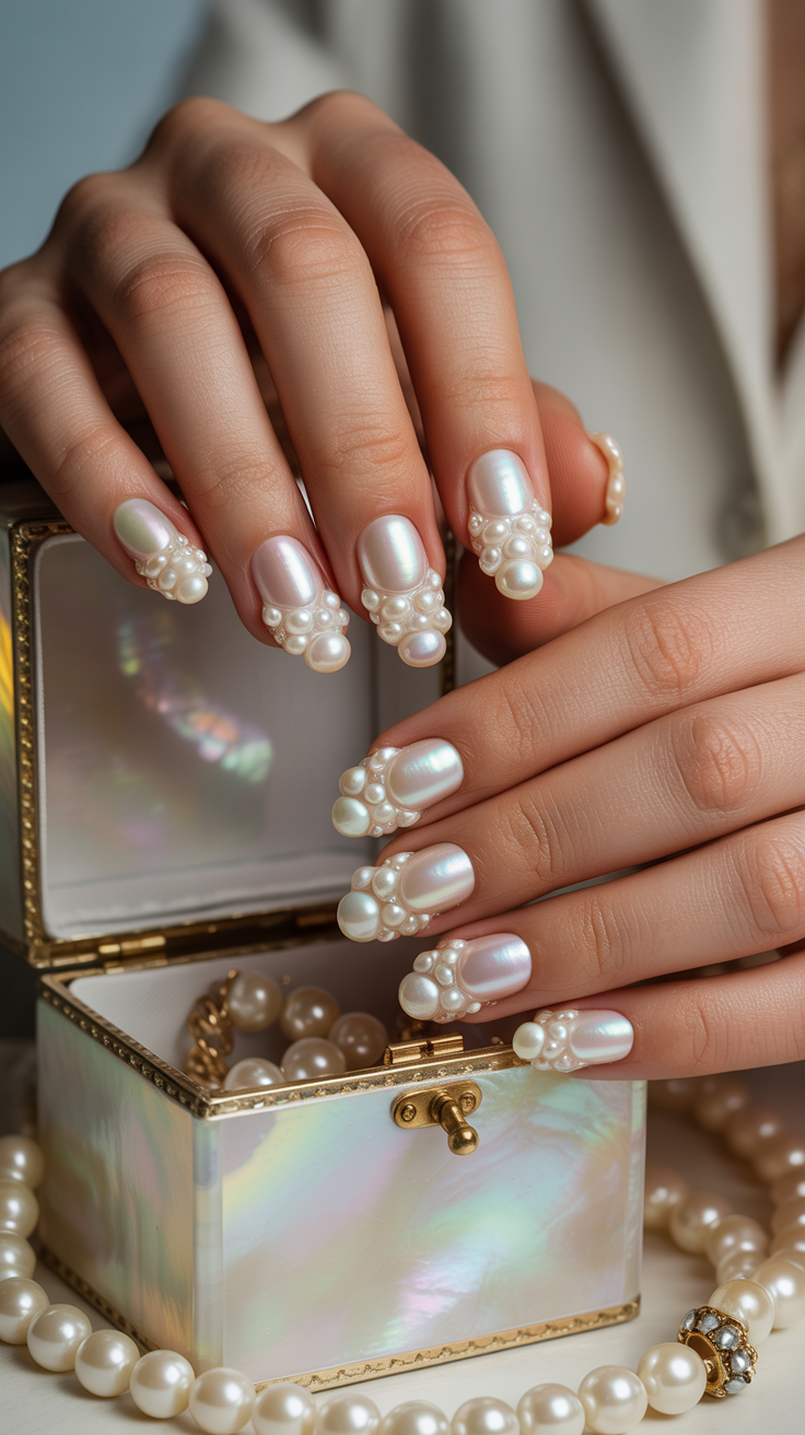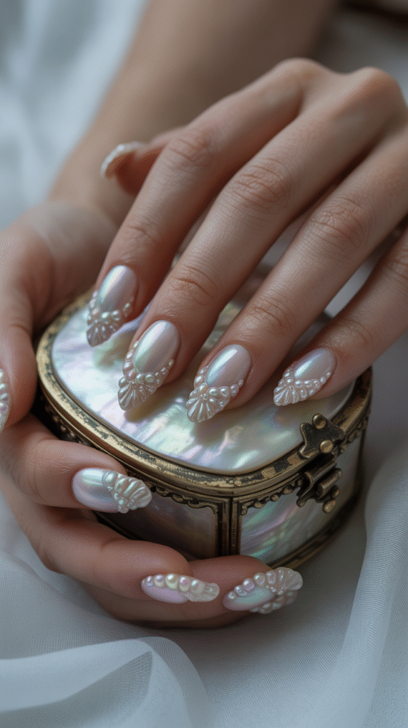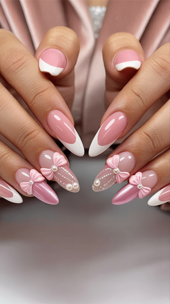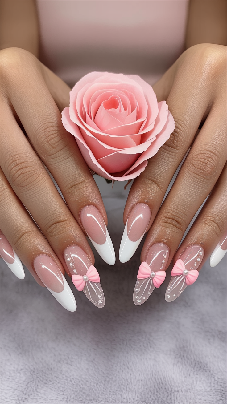 Add pearls, rhinestones, or tiny bows for a 3D luxe effect. Great for bridal, gala, or special occasion manis.