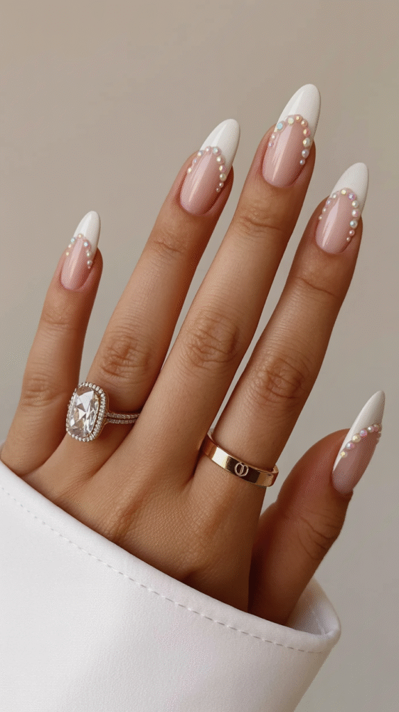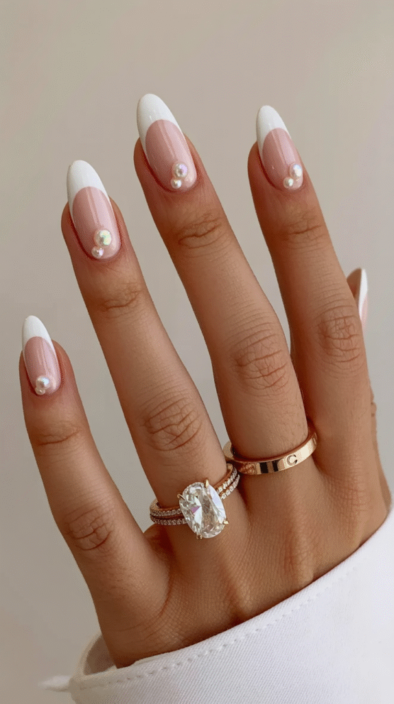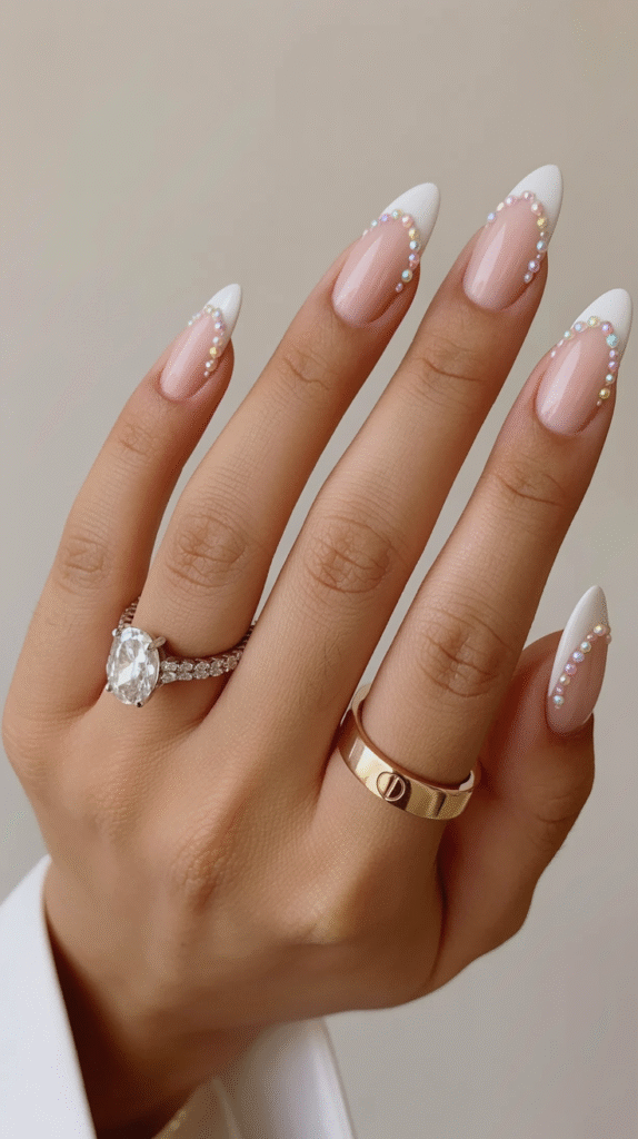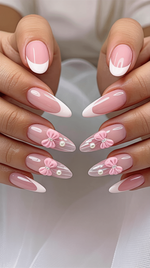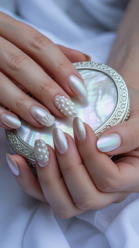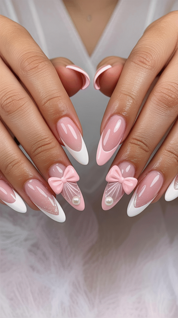 Add pearls, rhinestones, or tiny bows for a 3D luxe effect. Great for bridal, gala, or special occasion manis.
