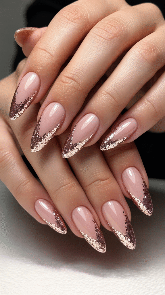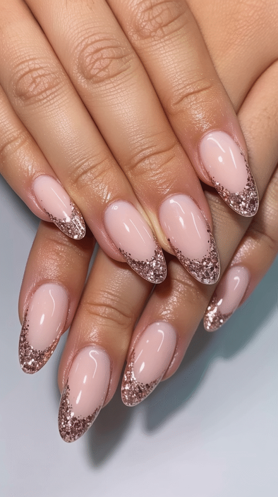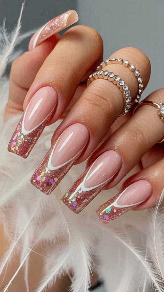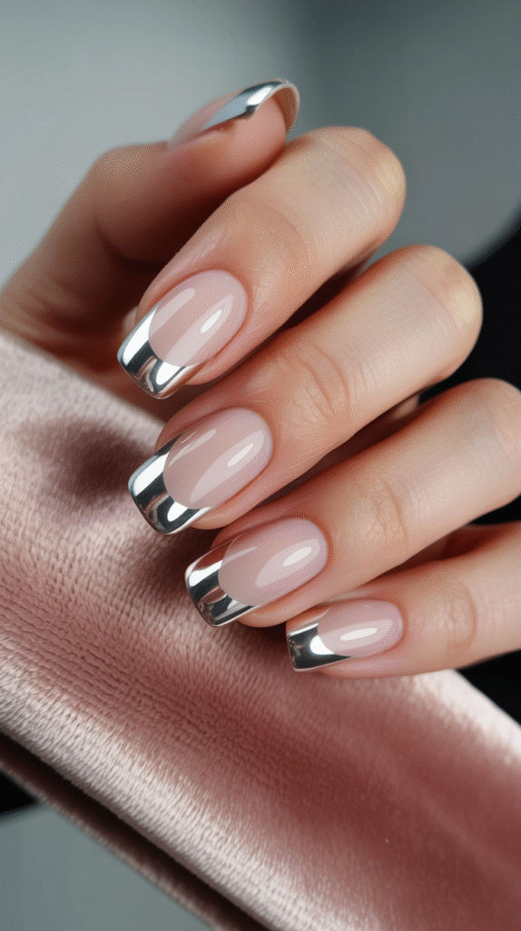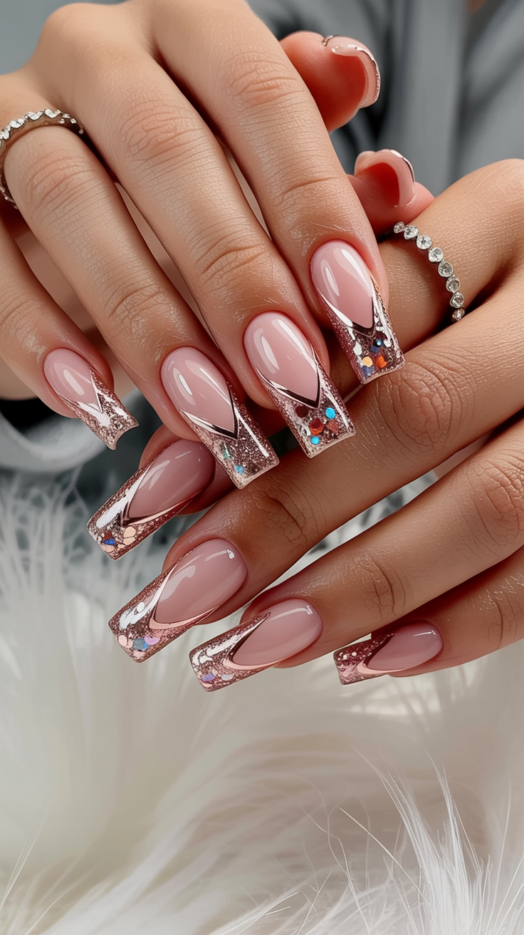 I’m totally into glitter and metallic French tips for a fancy twist on the classic look. They’re perfect for any special event or just to spice up your daily style. You can pick from many glitter and metallic finishes to match your style.