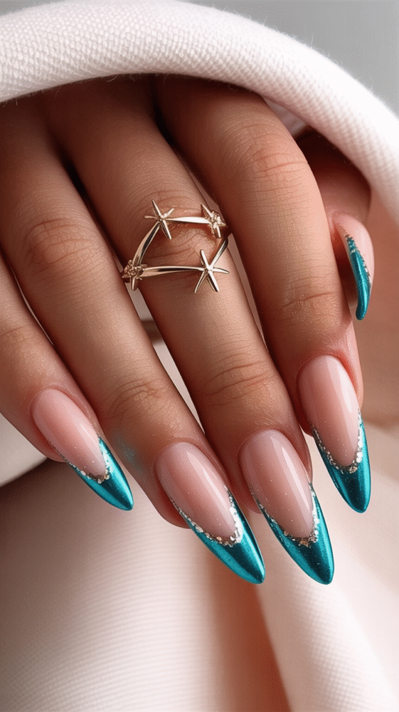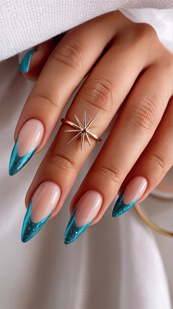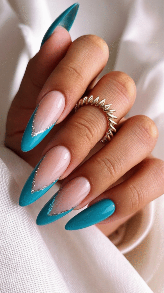 5. Aqua Blue Shimmer Tips – Beachy Shimmer Accents