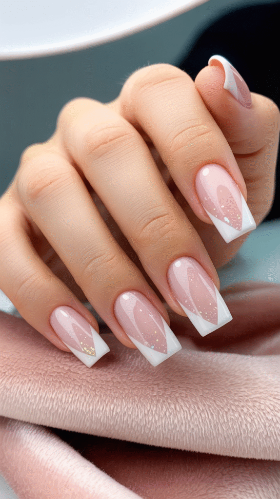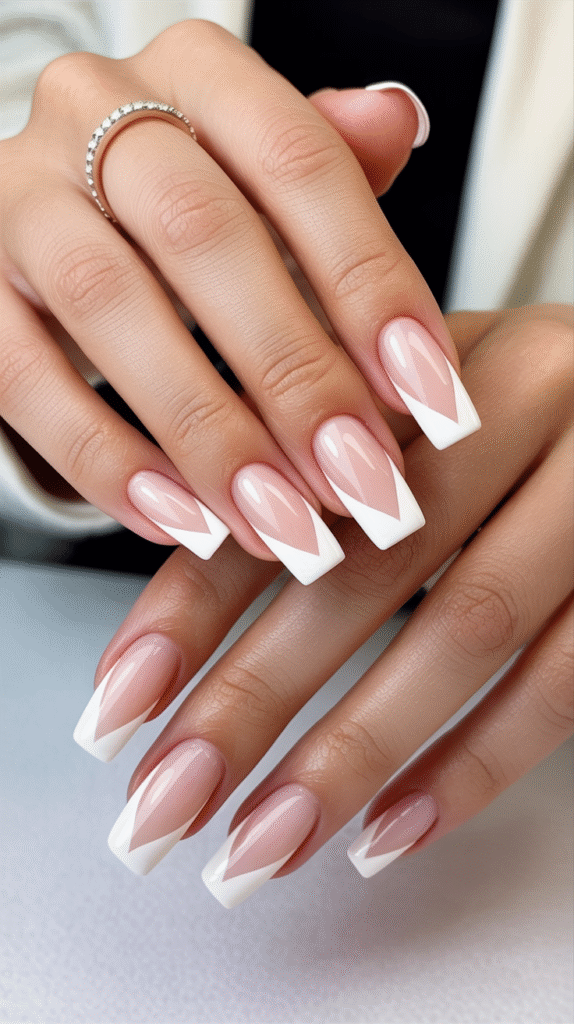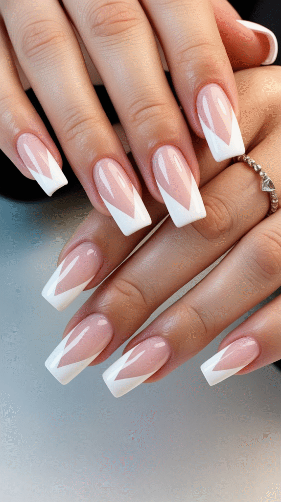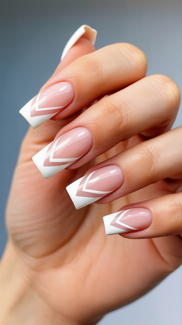 Instead of curved lines, try sharp angles with a chevron or V-shape tip design. It’s edgy, fashion-forward, and elongates the look of your nails.