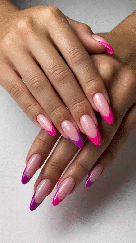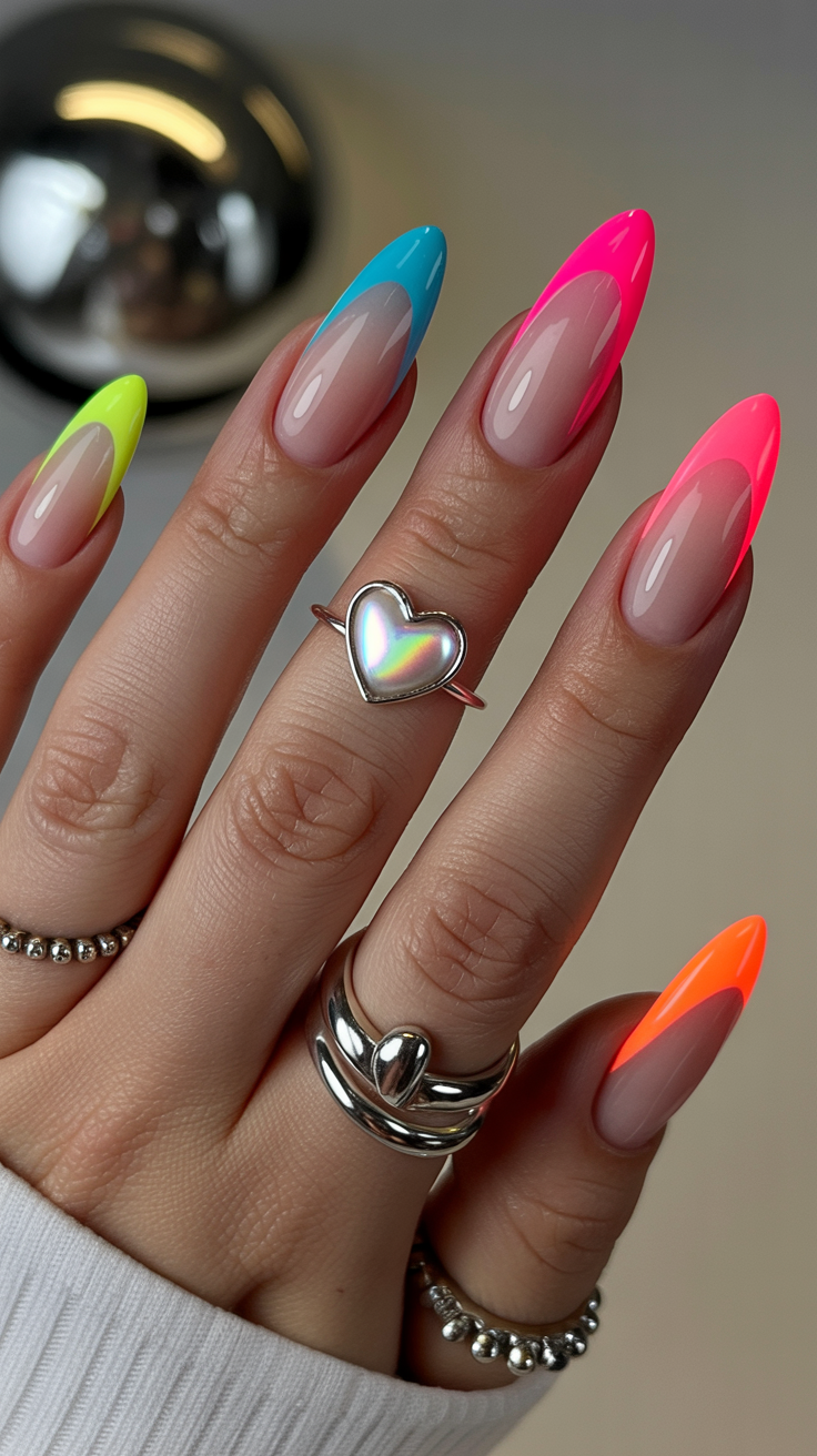 19. Neon Gradient French – Ombré Effect with Neon Hues