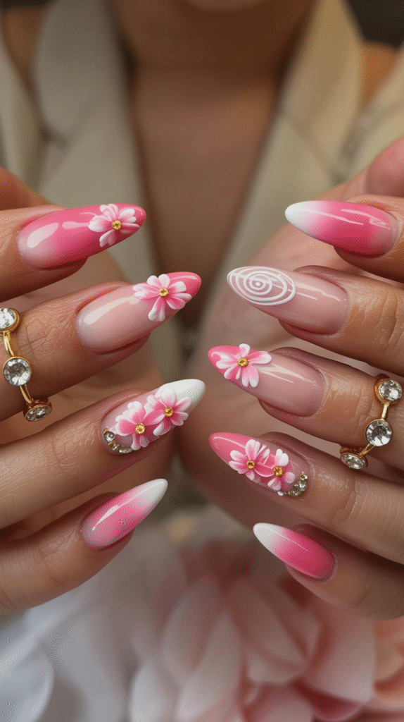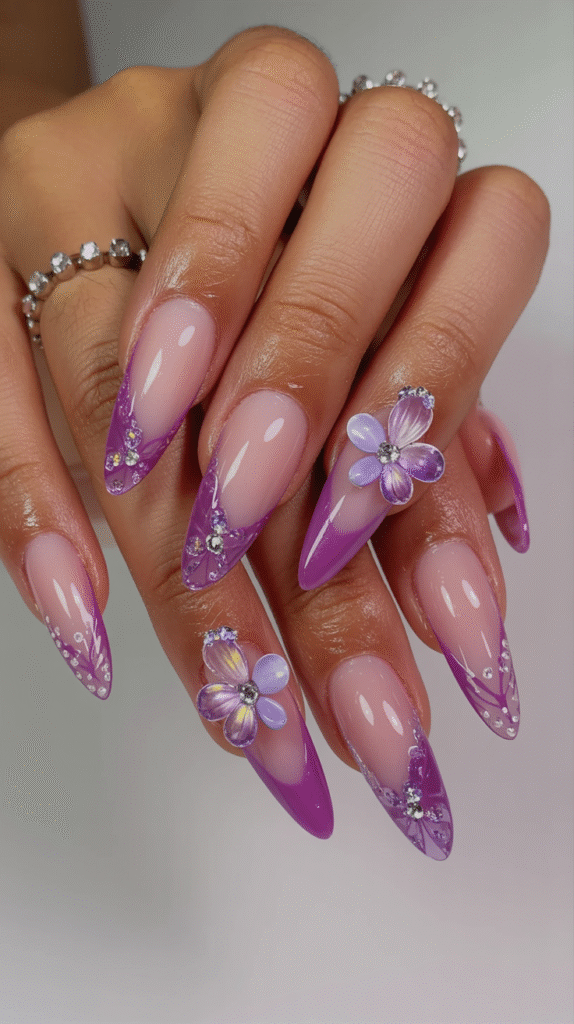 Take your manicure into bloom! These 3D floral tips feature sculpted roses or daisies right on the nail, adding instant romance and charm.