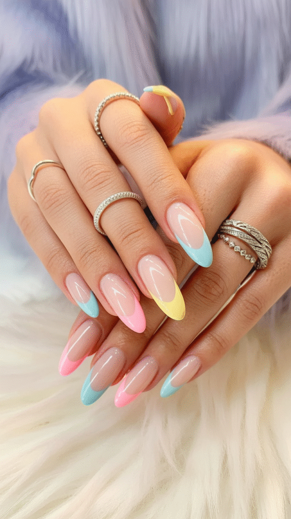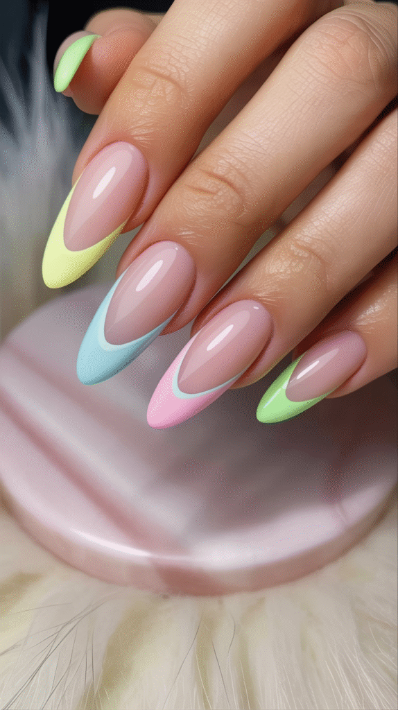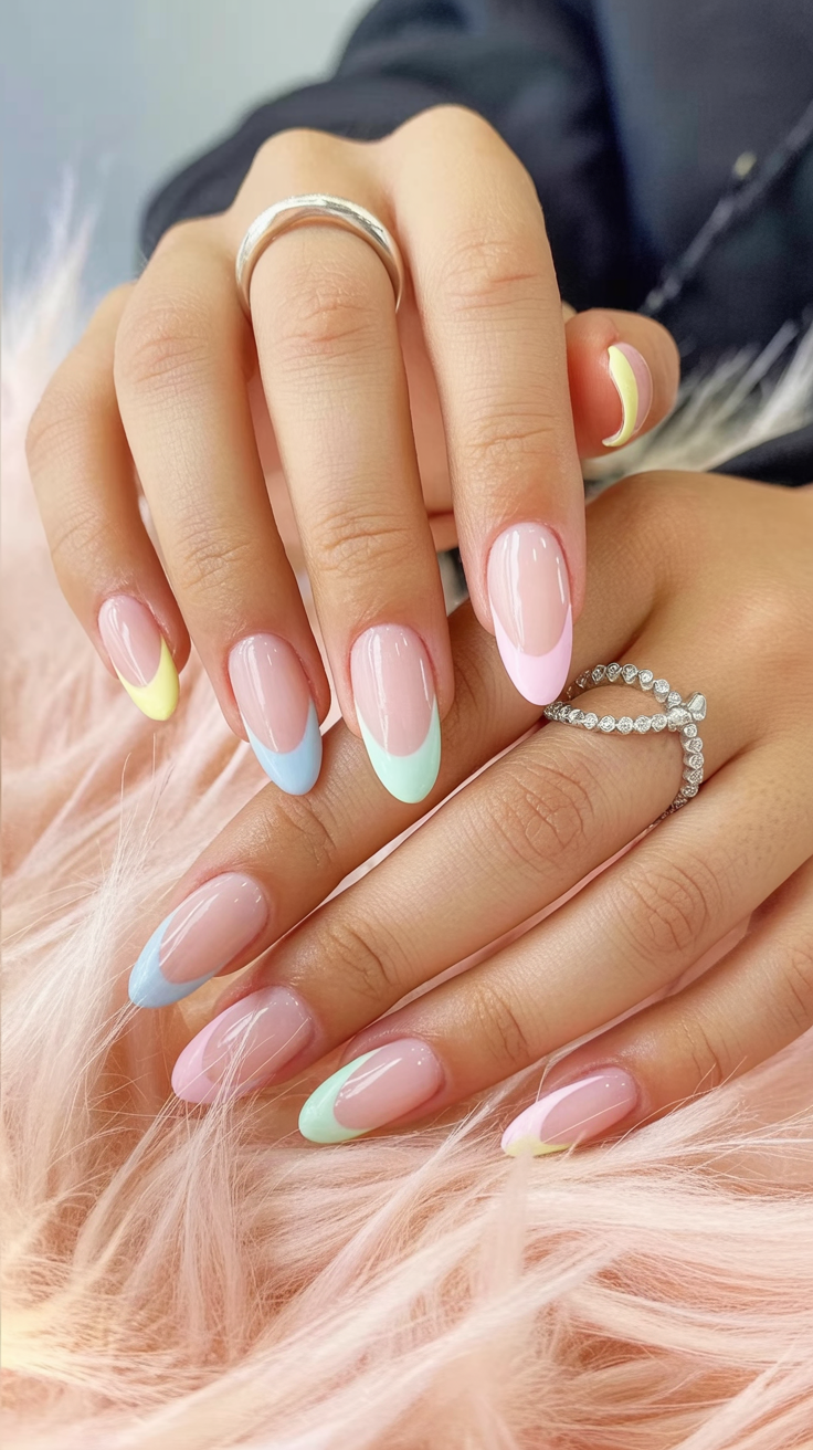 Pastel French tip nails are a fun twist on the classic style. You can play with soft colors like mint green, baby pink, and lavender for a fresh look.