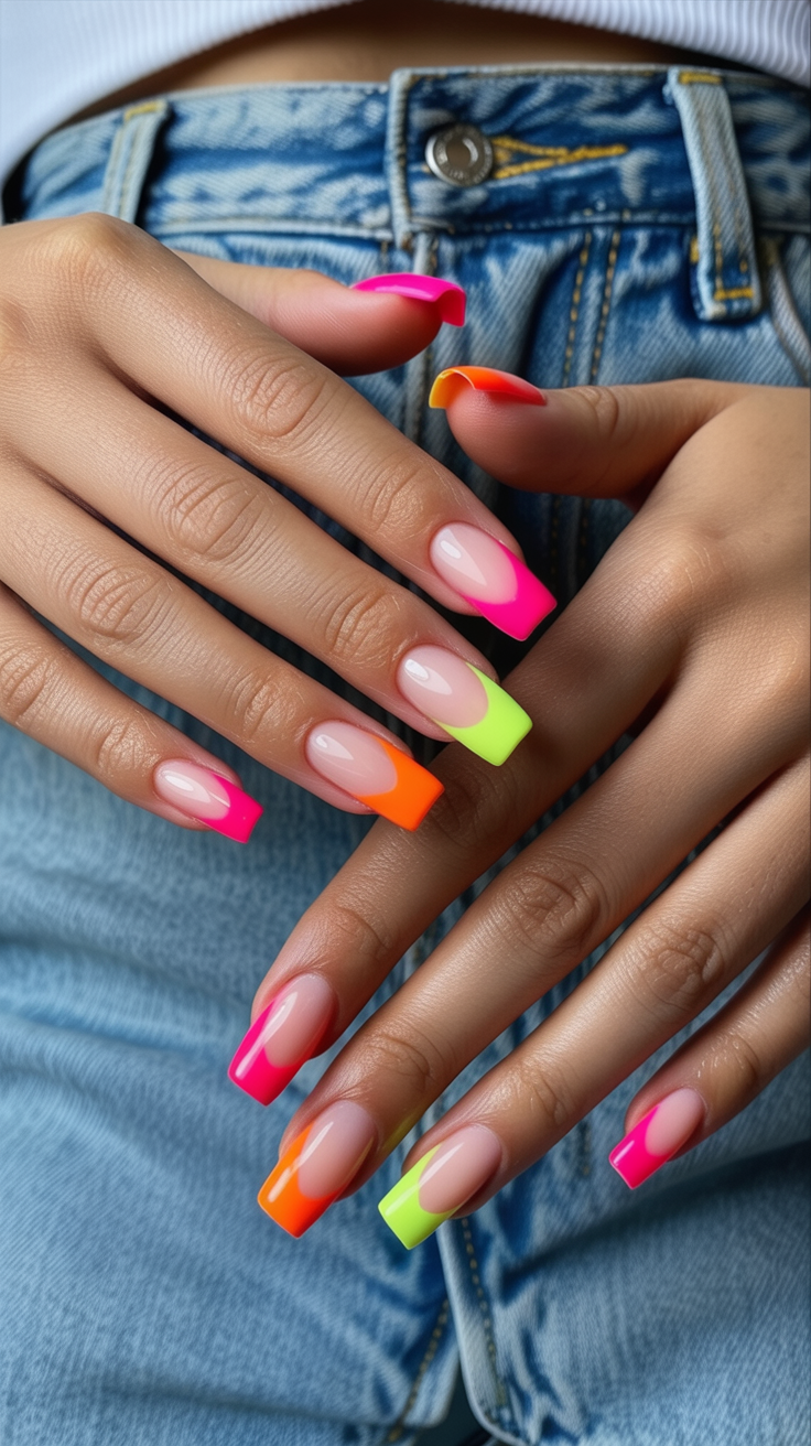 3. Neon-Colored Tips – Bold, Vibrant Summer Update