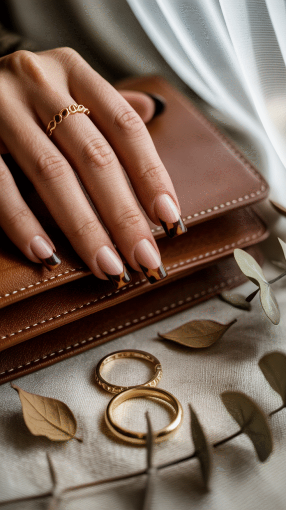 Add vintage appeal with tortoiseshell tips in amber, brown, and black swirls. It’s a unique way to make French tips feel editorial.