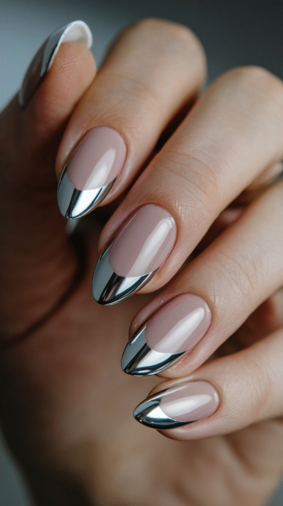 Sleek and futuristic, chrome silver tips are the perfect winter manicure. They give off a mirror-like shine that’s chic and commanding.