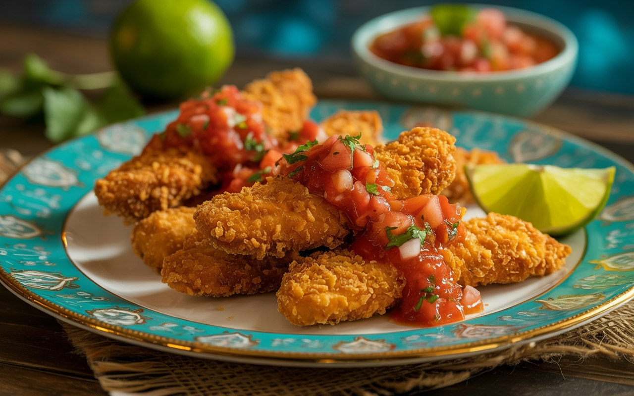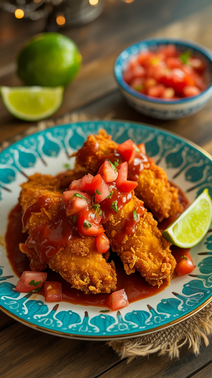 This dish combines the irresistible crunch of fried chicken with the smoky heat of chipotle—two things that are hard to resist. Whether you’re throwing a party or just craving something bold, this Mexican Pollo Frito is a recipe that delivers every time.